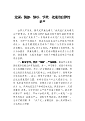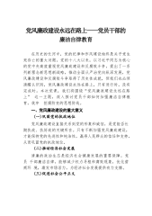 党课:慎独、慎权、慎微,做廉洁自律的表率全面从严治党,强化党风廉政建设工作是我们党的建设工作的重点,是确保我们党的执政地位得到巩固的有效措施。当前我们党制定了一系列规章来规范广大党员特别是党员领导干部的行为,但是在实际生活和工作过程中仍然有极少数党员特别是党员领导干部的行为违背这些规章甚至触犯国家法律,败坏了党风,严重损害了党的形象。我认为加强党风廉政建设,建立完备的制度体系是十分必要的,但是最根本的还是我们的党员特别是党员领导干部要学会自律。一、勤奋学习,坚持“慎独”,严格自律。勤奋学习是提高拒腐防变能力的有效途径。第一、学习理论,有助于保持政治上的清醒和坚定。理论上的清醒是政治上清醒的前提...