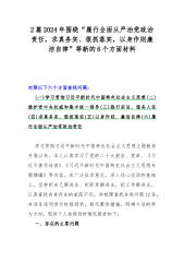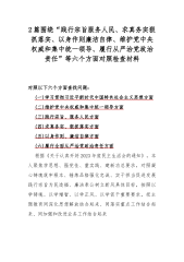 2篇围绕“践行宗旨服务人民、求真务实狠抓落实、以身作则廉洁自律、维护党中央权威和集中统一领导、履行从严治党政治责任”等六个方面对照检查材料