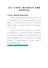 2篇围绕“践行宗旨服务人民、求真务实狠抓落实、以身作则廉洁自律、维护党中央权威和集中统一领导、履行从严治党政治责任”等六个方面对照检查材料对照以下六个方面查找问题:(一)学习贯彻习近平新时代中国特色社会主义思想方面(二)维护党中央权威和集中统一领导方面(三)践行宗旨、服务人民方面(四)求真务实、狠抓落实方面(五)以身作则、廉洁自律方面(六)履行全面从严治党政治责任方面根据《关于认真开好2023年度民主生活会的通知》,本人聚焦学思想、强党性、重实践、建新功总要求,对照凝心铸魂筑牢根本、锤炼品格强化忠诚、实干担当促进发展践行宗旨为民造福、廉洁奉公树立新风具体目标,按照以学铸魂、以学增智、以学正风、...