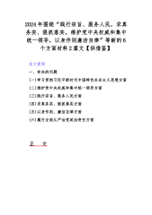 2024年围绕“践行宗旨、服务人民,求真务实、狠抓落实,维护党中央权威和集中统一领导,以身作则廉洁自律”等新的6个方面材料2篇文【供借鉴】