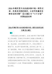 2024年以身作则、廉洁自律方面存在的问题(15篇)与围绕“维护党中央权威和集中统一领导、求真务实狠抓落实”等六个方面对照检查材料【9790字文】