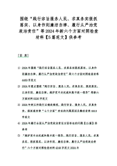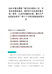 2024年围绕“践行宗旨服务人民、求真务实狠抓落实、以身作则廉洁自律、维护党中央权威和集中统一领导、履行从严治党政治责任”等新六个方面对照检查材料【5篇文】供参考[目录]一、2024年围绕“维护党中央权威和集中统一领导、践行宗旨服务人民、以身作则廉洁自律、履行从严治党政治责任”等六个方面对照检查材料4090字范文二、2024年以身作则、廉洁自律方面存在的问题【15篇】供参考三、2024年围绕“维护党中央权威和集中统一领导,践行宗旨、服务人民,求真务实、狠抓落实,以身作则、廉洁自律”等新六方面材料5130字范文四、2024年围绕“维护党中央权威和集中统一领导、求真务实狠抓落实、以身作则廉洁自律、...
