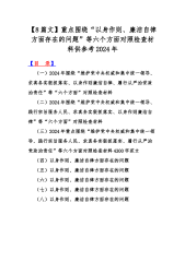 2024年围绕“维护党中央权威和集中统一领导,狠抓落实,以身作则廉洁自律”等新的6个方面材料【3份】供借鉴