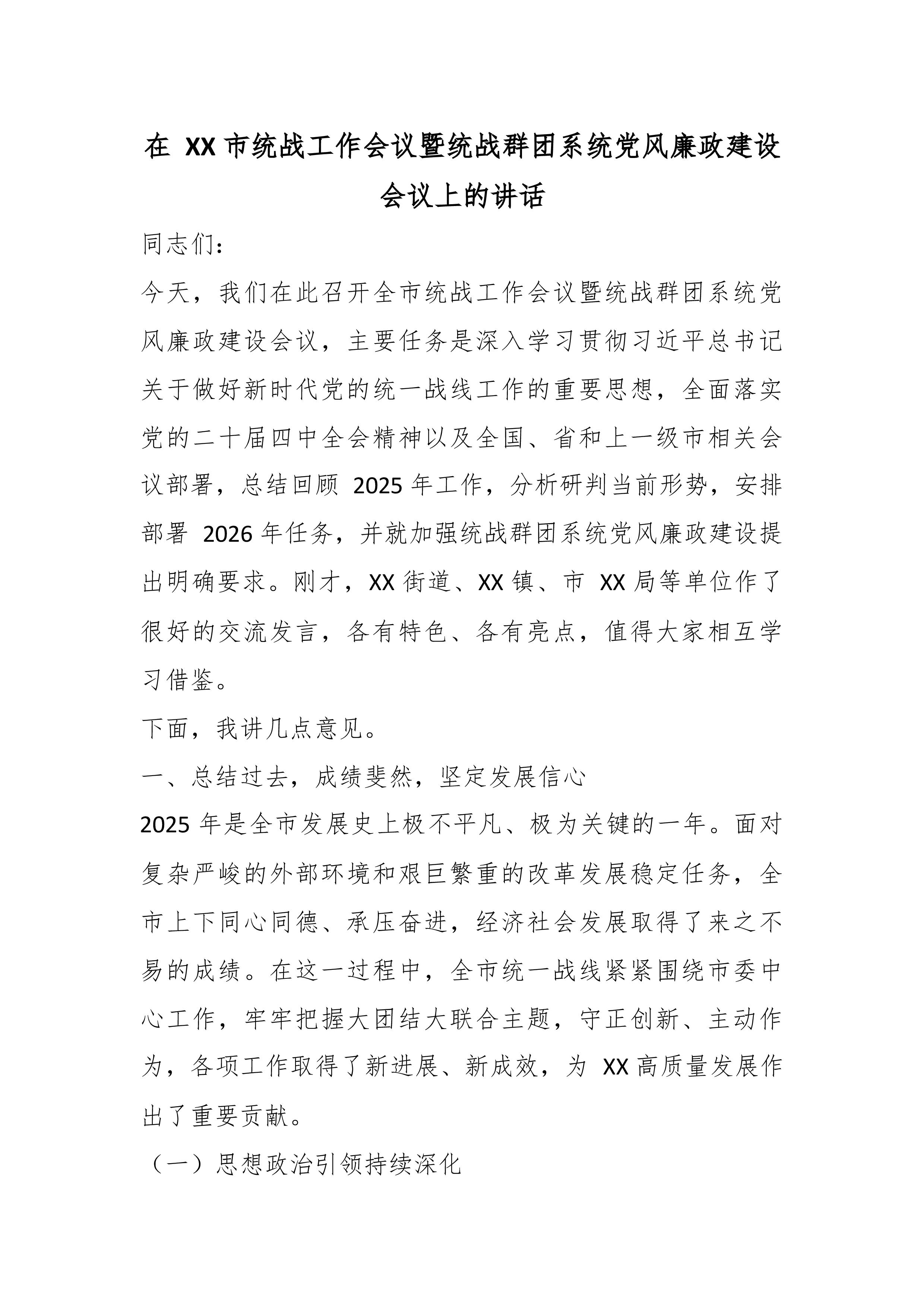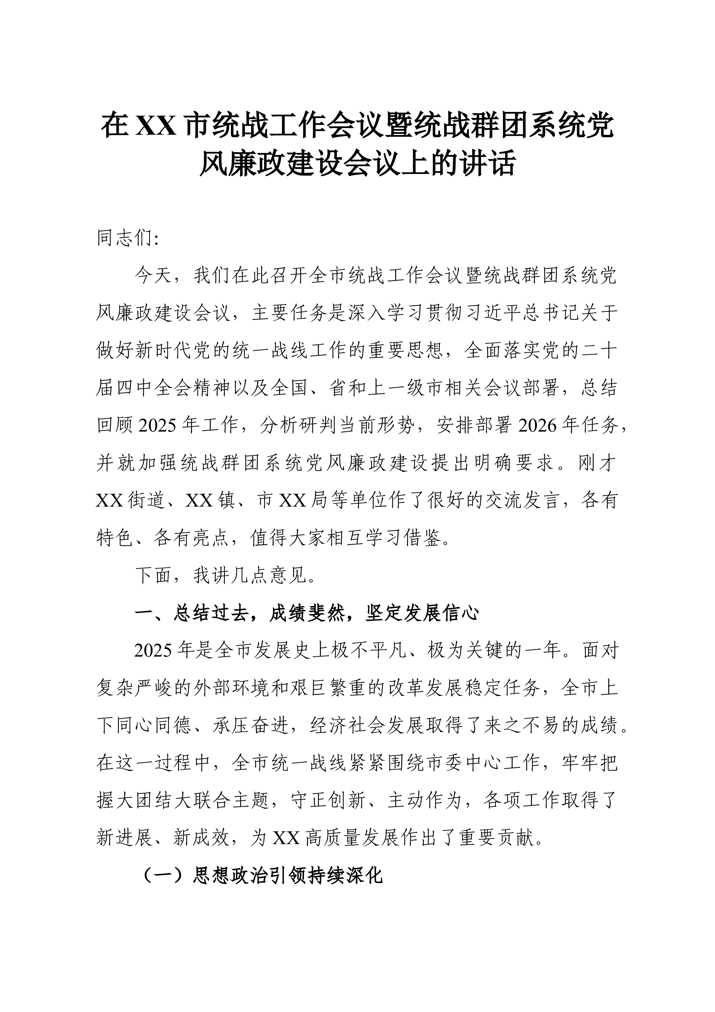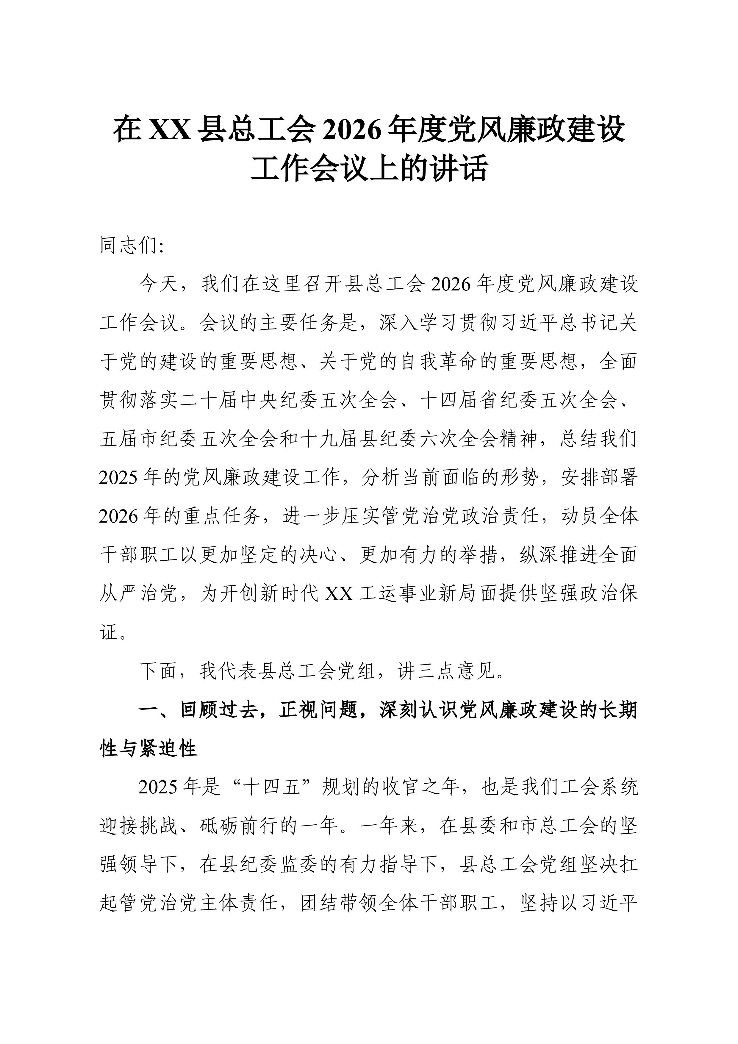 在2026年区机关事务服务中心全面从严治党暨党风廉政建设工作会议上的讲话同志们:今天,我们召开区机关事务服务中心全面从严治党暨党风廉政建设工作会议,主要任务是坚持以新时代中国特色社会主义思想为指导,深入学习贯彻党的二十大和二十届历次全会精神,全面传达落实区纪委十三届六次全会精神,总结回顾中心2025年全面从严治党和党风廉政建设工作,安排部署今年重点任务。今天,区纪委常委、区监委委员、区纪委监委派驻第六纪检监察组组长*同志专程到会指导,这充分体现了区纪委监委对机关事务工作的高度重视和对中心干部队伍的关心爱护。在此,我代表中心党组表示热烈欢迎和衷心感谢。中心全体人员要深刻领会会议精神,以高度的政治责任感和使命感,推动全面从严治党向纵深发展,为“十五五”开局起步筑牢政治保障和纪律屏障。刚刚过去的2...