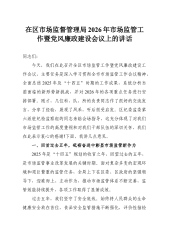 在区市场监督管理局2026年市场监管工作暨党风廉政建设会议上的讲话同志们:今天,我们在此召开全区市场监管工作暨党风廉政建设工作会议,主要任务是深入学习贯彻全市市场监管工作会议精神,全面总结2025年及“十四五”时期的工作成果,系统分析当前面临的新形势新挑战,并对2026年的各项重点任务进行安排部署。刚才,几位科、队、所的负责同志作了很好的交流发言,分享了经验,展现了风采,听后很受启发。区纪委监委第六派驻纪检监察组的同志亲临会场指导,这充分体现了对我们市场监管工作的高度重视和对我们干部队伍的深切关怀,我们在此表示衷心的感谢!下面,我讲几点意见。一、回首过去五年,砥砺奋进中彰显市场监管新作为2025年是“十四五”规划的收官之年,回望过去的五年,是市场监管事业改革发展的关键时期。面对复杂多变的宏观...