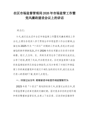 在区市场监督管理局2026年市场监管工作暨党风廉政建设会议上的讲话