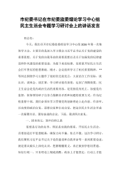 在市委理论学习中心组集体学习暨市委常委班子2025年度民主生活会会前学习研讨会上的讲话稿同志们:现在开始开会。今天我们召开市委理论学习中心组集体学习暨市委常委班子2025年度民主生活会会前学习研讨会,主要任务是:聚焦学习贯彻习近平新时代中国特色社会主义思想,深入学习领会习近平总书记关于党的建设、党的自我革命、加强党的纪律建设和作风建设等一系列重要论述,认真学习习近平总书记在二十届中央政治局第二十一次集体学习、党的二十届四中全会上的最新重要讲话精神,以及对本地区本领域的重要指示批示精神;专题传达学习习近平总书记在2025年度中共中央政治局民主生活会上的重要讲话精神,学习中央办公厅印发的关于推进作风建设常态化长效化的意见以及习近平总书记重要文章《扩大内需是战略之举》;围绕学习主题进行交流研讨,为...