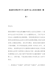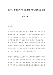 在XX县委理论学习中心组2025年第七次学习会上的讲话(精品)同志们:今天,我们召开县委理论学习中心组2025年第七次学习会,主要任务是深入学习领会党的二十届四中全会精神,特别是习近平总书记的重要讲话精神和全会审议通过的《中共中央关于制定国民经济和社会发展第十五个五年规划的建议》刚才,我们进行了集体学习,XX同志领学了全会公报,几位同志结合思想和工作实际,作了很好的交流发言,听了很受启发。大家准备充分、思考深入,谈认识、讲体会、谋思路,达到了深化认识、凝聚共识、促进工作的预期效果。党的二十届四中全会,是在中华人民共和国成立76周年之际,在“两个一百年”奋斗目标的历史交汇点上,召开的一次具有全局性、历史性意义的重要会议。全会擘画了我国未来五年乃至更长时期发展的宏伟蓝图,为我们奋进新征程、夺取新...