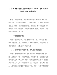 XX市生态环境监测中心领导班子2025年度民主生活会对照检查材料(五个带头)根据上级统一部署,紧扣本次民主生活会主题,中心领导班子在深化理论学习、广泛征求意见、深入谈心谈话的基础上,紧密联系思想、职责和工作实际,对照“五个带头”要求,全面深入查摆问题,深刻剖析思想根源,明确整改方向与措施。现将对照检查情况报告如下。一、存在的主要问题领导班子紧扣主题,对照党的二十届四中全会关于推进中国式现代化的战略部署和锲而不舍落实中央八项规定精神的要求,结合生态环境监测主责主业,认真查摆了以下五个方面的问题。(一)在带头强化政治忠诚、提高政治能力方面一是从政治高度谋划监测业务全局的视野有待拓宽。对标“国之大者”和高质量发展首要任务,将监测工作融入中国式现代化XX实践进行系统性、前瞻性思考不足。例如,在编制年...
