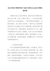X集团股份有限公司2025年度民主生活会领导班子对照检查材料(精品)根据XX党委的统一部署和集团公司党委的工作安排,本次民主生活会紧扣“深入学习贯彻习近平新时代中国特色社会主义思想,全面贯彻落实党的二十届三中、四中全会精神,深入贯彻落实习近平总书记重要讲话和重要指示批示精神,以打攻坚战、持久战的决心和恒心,锲而不舍落实中央八项规定精神,推进作风建设常态化长效化,以优良作风凝心聚力、真抓实干,聚焦高质量发展首要任务,扎实推进中国式现代化,为实现“十五五”良好开局奠定坚实基础”这一主题。会前,领导班子成员通过个人自学与集中研讨相结合的方式,深入学习了党的二十大和二十届三中、四中全会精神,认真研读了习近平总书记系列重要讲话和对XX、XX工作的重要指示批示精神,广泛征求了基层单位和党员群众的意见建议...