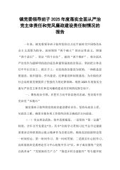 镇党委领导班子2025年度落实全面从严治党主体责任和党风廉政建设责任制情况的报告