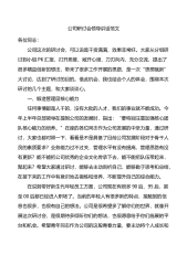 XX企业春节后复工复产工作会议领导讲话同志们:大家新年好!今天是春节后上班的第一天,我们开个短会,既是收心会,也是年后工作的启动会。借此机会,我代表公司经营班子给大家拜个晚年,祝大家在新的一年里,身体健康、工作顺利。同时,希望大家迅速把思想和精力转移到工作中来,精心安排和部署好本单位、本部门的各项工作,以敢想、敢闯、敢拼的精神,抢抓机遇,务实创新,扎实工作,为圆满完成今年各项工作任务开好局、起好步。下面,我结合当前实际,就近期工作讲三点意见:一、统一思想,认清形势,立即调整工作状态过去的2022年是公司成立以来最为艰难的一年。受疫情频发、经济下行等因素影响,**市场持续低迷,导致公司销售难、回...