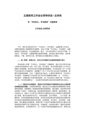 主题教育工作会议领导讲话+主持词在“不忘初心、牢记使命”主题教育工作会议上的讲话今天,我们在这里召开全X“不忘初心、牢记使命”主题教育工作会议,主要任务是深入贯彻落实中央精神,对全X开展“不忘初心、牢记使命”主题教育进行全面动员,作出部署安排。刚才,XXX同志领学了中央关于开展“不忘初心、牢记使命”主题教育意见的有关部署,请大家认真学习领会,抓好贯彻落实。下面,我代表X委,就开展这次主题教育讲几点意见。一、统一思想,提高认识,充分认识开展这次主题教育的重大意义在全党深入开展“不忘初心、牢记使命”主题教育,是以习近平同志为核心的党中央统揽伟大斗争、伟大工程、伟大事业、伟大梦想在党的十九大作出的重...