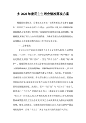 乡2025年度民主生活会整改落实方案