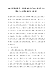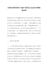 XX县数政局党组成员2025年度民主生活会个人对照检查材料(精品)根据本次民主生活会主题要求与统一部署,本人聚焦“深入学习贯彻习近平新时代中国特色社会主义思想,全面贯彻落实党的二十届三中、四中全会精神,锲而不舍落实中央八项规定精神,以优良作风扎实推进中国式现代化”这一核心主题,在会前认真研读了规定篇目,深入学习领会习近平总书记关于党的自我革命的重要思想、关于树立和践行正确政绩观的重要论述、关于加强和改进民族工作的重要思想,以及党的二十届四中全会精神决策部署。同时,主动与班子成员、分管股室负责同志、基层党员干部开展了多层次谈心谈话,并通过书面形式征求了部分服务对象和机关同志的意见建议。在此基础上,紧扣本次民主生活会明确的五个“带头”方面要求,紧密结合个人思想、学习和工作实际,特别是结合分管领域...