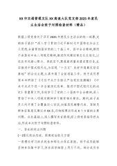 XX市交通管理支队XX高速大队党支部2025年度民主生活会班子对照检查材料(精品)根据上级党委关于召开2025年度民主生活会的统一部署,支部班子紧扣“深入学习贯彻习近平新时代中国特色社会主义思想,全面贯彻落实党的二十届三中、四中全会精神,锲而不舍落实中央八项规定精神,推进作风建设常态化长效化,以优良作风凝心聚力、真抓实干,聚焦高质量发展首要任务,扎实推进中国式现代化,为实现‘十五五’良好开局奠定坚实基础”的会议主题,认真开展了会前准备工作。班子成员原原本本研读了《习近平关于全面从严治党论述摘编》《中共中央关于进一步全面深化改革、推进中国式现代化的决定》等重要文件,系统学习了党的二十届四中全会精神,深入贯彻了中央八项规定精神学习教育相关要求。期间,班子成员之间开展了全覆盖谈心谈话,向基层民辅警...