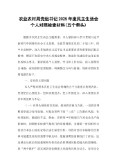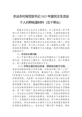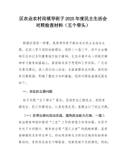 XX区农业农村局领导班子2025年度民主生活会对照检查材料(五个带头)