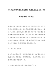 XX区农业农村局领导班子2025年度民主生活会对照检查材料(五个带头)根据区委统一部署,我局领导班子紧扣本次民主生活会主题,在深入学习党的创新理论、党的二十届三中、四中全会精神及习近平总书记系列重要指示批示精神,扎实开展中央八项规定精神学习教育的基础上,紧密联系班子思想和工作实际,广泛征求意见建议,深入进行谈心谈话,全面查摆突出问题,深刻剖析问题根源,明确了整改方向和措施。现将对照检查情况报告如下。一、存在的主要问题班子对照“五个带头”要求,坚持把自己摆进去、把职责摆进去、把工作摆进去,认真检视反思,查摆出以下突出问题。(一)在带头强化政治忠诚、提高政治能力方面一是从政治高度审视和推进“三农”工作的穿透力有待加强。对党中央关于乡村振兴、粮食安全等“国之大者”的战略部署,虽然能够做到及时传达学...