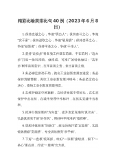写作精选排比句大全汇编(1054+主题)1.选准抓落实的切入点,扭住抓落实的着力点,把握抓落实的突破点。2.从激活动力入手,攻坚“不愿落实”的问题;从鼓励担当入手,攻坚“不敢落实”的问题;从增强本领入手,攻坚“不会落实”的问题。3.科学决策抓落实,压实责任抓落实,强化督查抓落实、精准考核抓落实,激励担当抓落实,完善保障抓落实。4.在增强事业心、责任感中狠抓落实,在勇于担当、攻坚克难中狠抓落实,在求真务实、埋头苦干中狠抓落实,在持之以恒、一以贯之中狠抓落实。5.守初心,知行合一抓落实;担使命,真抓实干抓落实;找差距,聚焦问题抓落实;见实效,结果评价抓落实。6.亲力亲为抓落实,挺直标杆抓落实,敢于...