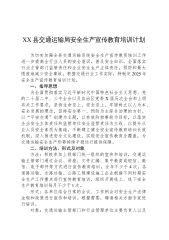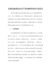 交通运输机关2025年安全生产宣传教育培训计划范文