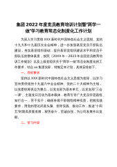 集团2022年度党员教育培训计划暨“两学一做”学习教育常态化制度化工作计划