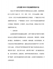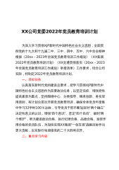 集团2022年度党员教育培训计划暨”两学一做”学习教育常态化制度化工作计划为深入学习贯彻XXX新时代中国特色社会主义思想、党的十九大和十九届历次全会精神,进一步加强基层党员干部队伍建设,夯实基层组织基础,提升基层党组织建设水平和党员干部队伍的整体素质,按照《20XX年-2023年全国党员教育培训工作规划》以及上级党组织关于”两学一做”常态化制度化的工作要求,结合xx集团实际,特制定本计划,具体安排如下。一、目标要求坚持以XXX新时代中国特色社会主义思想为指导,以学习宣传贯彻党的十九届六中全会精神、党的二十大精神为主线,以党委统筹抓总为重点,以党支部为基本单元,以党支部”三会一课”、主题党日活动...