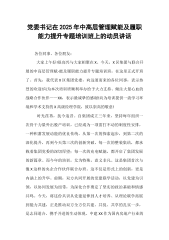 在XX集团中高层管理赋能及履职能力提升专题培训班上的心得体会在集团党委的精心组织下,我有幸参加了此次中高层管理赋能及履职能力提升专题培训班。为期数天的集中学习,是一次精准的理论“补钙”、深刻的思想“淬炼”与全面的能力“加油”。本次培训围绕“提升政治能力”“开拓视野格局”“炼履职本领”三大模块,设置了内容丰富、紧贴实际的课程体系。作为集团党委办公室的一员,我深感此次培训既是一场“及时雨”,又是一次“催征鼓”,让我对新形势下如何立足本职,更好地服务集团高质量发展大局,有了更为系统深入的思考和更为清晰明确的行动方向。一、铸魂补钙,在深学细悟中淬炼政治忠诚,夯实履职之基政治能力是国有企业领导干部第一位的能力。本次培训将“提升政治能力”作为开篇首要模块,意义深远。从《学习习近平总书记关于党的自我革命重...