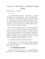 在XX公司“管网大讲堂”上的网络安全专题培训讲稿