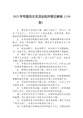 2025年度民主生活会互相批评意见(165条,可直接用)