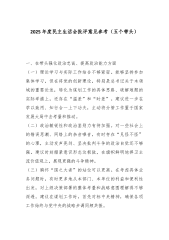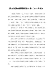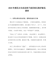 2025年度民主生活会、组织生活会互相批评意见建议300条