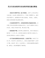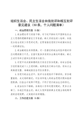 2025年民主生活会相互批评意见清单、批评意见及建议、自我批评意见、回复上级单位征求意见清单共8份【参考写稿素材】