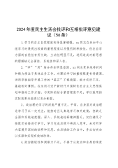 2025年民主生活会相互批评意见清单、批评意见及建议、自我批评意见、回复上级单位征求意见清单共8份【参考写稿素材】【目录】2025年民主生活会相互批评意见清单50条【思想建设、工作作风、工作能力、服务群众、廉洁自律5个方面】2025年民主生活会对领导干部及党员的批评意见及建议3010字文稿2025年普通党员组织生会五个方面自我批评意见25条农业农村局2025年民主生活会、组织生活会意见建议38条供参考2025年交通运输局副局长民主生活会四个方面自我批评意见32条2024年民主生活会回复上级单位征求意见清单(四个带头方面)1650字文2025年民主生活会、组织生活会批评意见(20条...