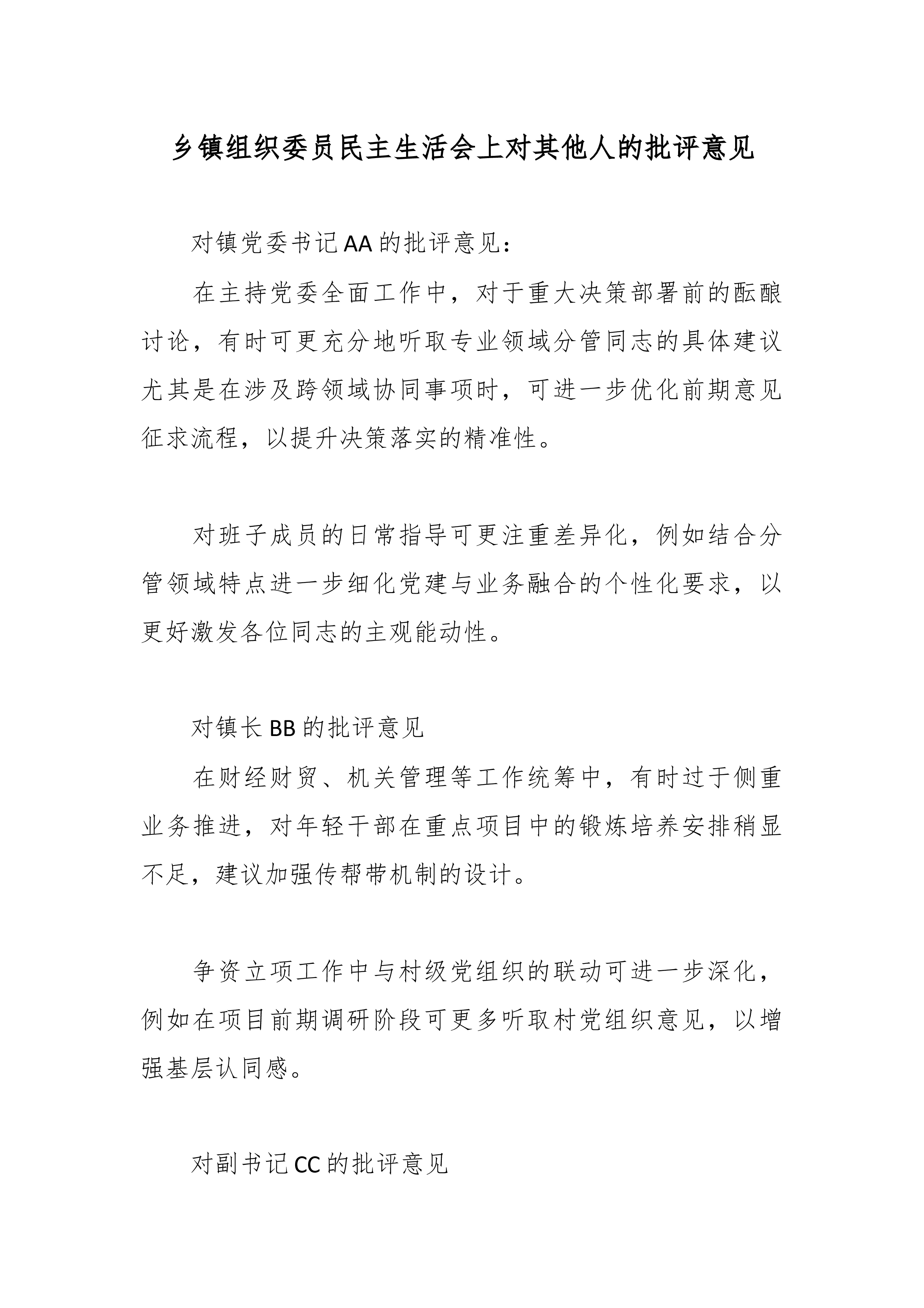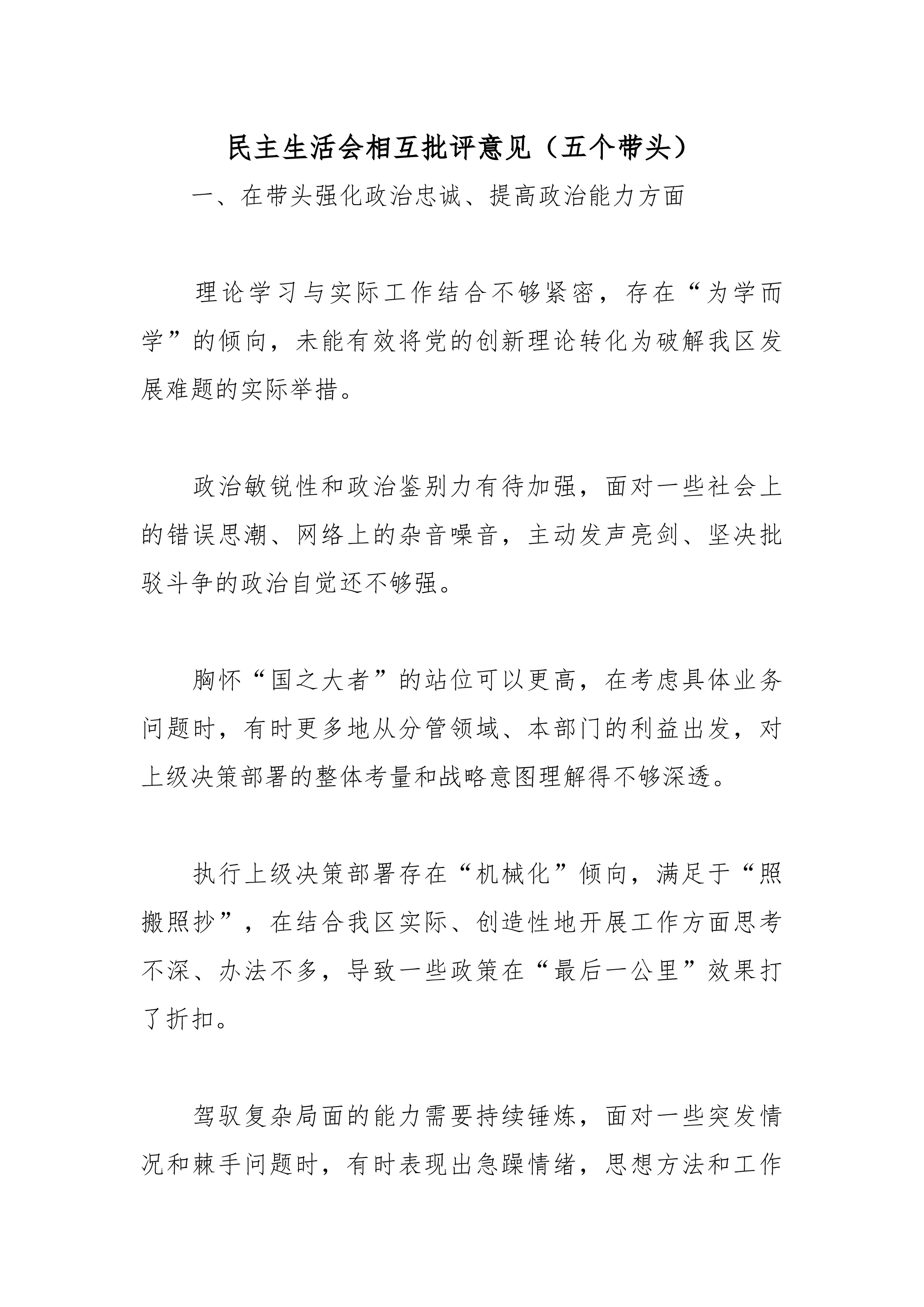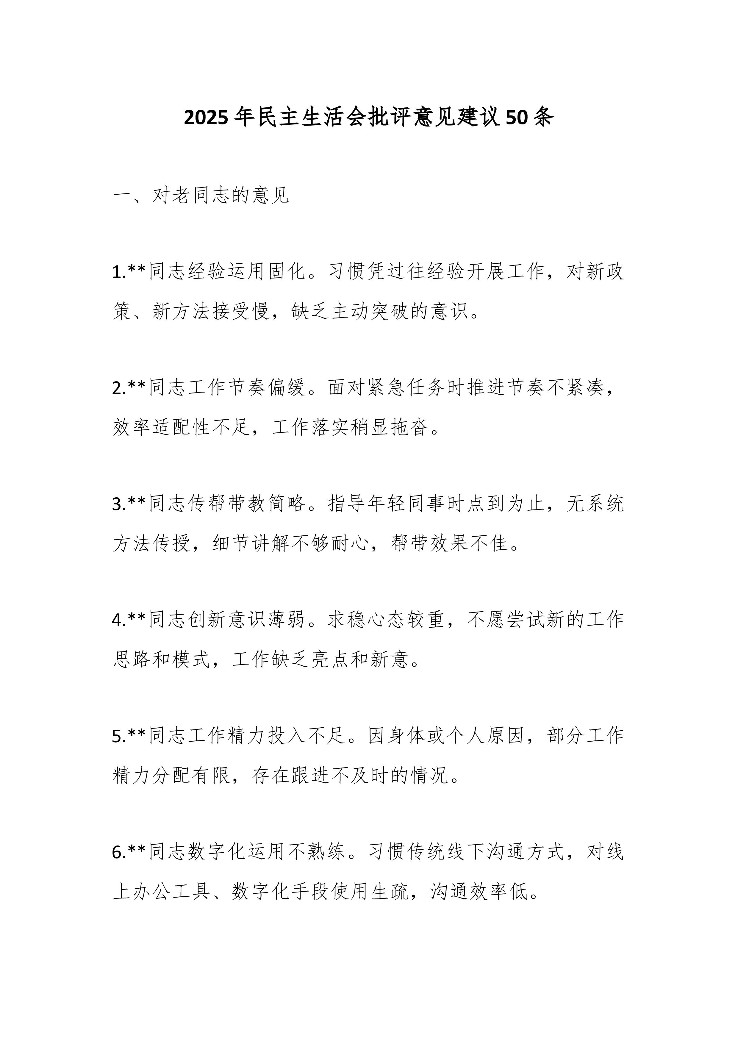2025年民主生活会、组织生活会批评与互相批评意见汇编(全)