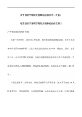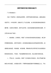 目录清明节文明祭祀倡议书1清明节文明祭扫倡议书2清明节文明祭扫倡议书3清明节文明祭扫倡议书4清明节文明祭祀倡议书5清明节文明祭祀倡议书6清明节文明祭祀倡议书7清明节文明祭祀倡议书7清明节文明祭祀倡议书全县广大城乡居民:更多公文素材、写作指导请加微信:gongwentangkf进微信群,即可获得海量免费素材,每日更新实时文稿。今年我们党将召开二十大,按照党中央统一部署,各级党委政府要扎实开展移风易俗重点领域突出问题专项治理,今年清明将至,每逢清明故乡行,洒酒焚香祭祖宗。清明祭扫、缅怀英烈、慎终追远、悼念先人是中华民族的优良传统,为营造绿色、文明、和谐、安全的祭祀氛围,巩固疫情防控成果,提高城乡文...