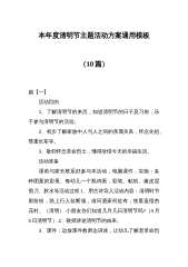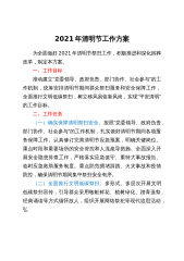 清明节是中华民族的传统节日,清明节祭扫是每年的一次大规模群众性活动,为保证清明节期间群众生产、生活和群众祭扫活动顺利进行,及时应对可能出现的突发事件,特别是严防因人员聚集引发的疫情,确保人民群众生命财产安全,维护社会稳定,特制定本预案。一、指导思想在疫情总体可控的前提下,以“平安祭扫、节地生态”为主题,认真贯彻殡葬有关政策、法规和文件精神,充分发挥清明祭扫服务保障工作对推进殡葬改革的积极作用,加快推进惠民、节地、生态殡葬,倡导移风易俗,强化行风建设,提高服务水平,实现文明祭扫,平安清明的工作目标。二、工作原则统一领导,分级负责;互相配合,属地为主;各司其职,各尽其责;科学决策、及时处置。三、组...