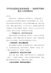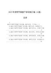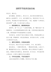 传承薪火继往开来凝心聚力共谱新篇——2025清明节讲话稿各位乡亲、同志们:春和景明,万物昭苏,又值清明时节。这一承载千年文明的节日,既是追思先辈的精神纽带,更是凝聚家国情怀的文化坐标。在这个缅怀与奋进交织的特殊时刻,我谨代表县委、县政府,向全县人民致以深切的问候!向坚守岗位的干部职工表示衷心感谢!下面围绕五个方面与大家交流:一、赓续红色血脉,传承精神火炬苍山埋忠骨,翠柏伴英灵。清明时节,我们不仅要追忆家族血脉,更要铭记为民族独立、人民解放献出生命的革命先驱。他们用生命诠释忠诚,以热血浇筑信仰,将不朽功勋镌刻在历史的丰碑上。岁月长河奔涌向前,英雄精神永续传承。在新时代征程中我们要将先烈们的理想信...