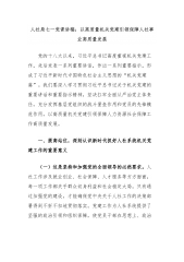 人社局七一党课讲稿:以高质量机关党建引领保障人社事业高质量发展党的十八大以来,习近平总书记高度重视机关党建工作,先后发表一系列重要讲话,作出一系列重要指示,形成了习近平新时代中国特色社会主义思想的“机关党建篇”。我们要深入学习贯彻习近平总书记关于机关党建的重要讲话和重要指示精神,坚决扛牢全面从严治党主体责任,充分发挥基层党组织的战斗堡垒作用和党员的先锋模范作用,以高质量机关党建引领保障人力资源社会保障工作高质量发展。一、提高站位,深刻认识新时代抓好人社系统机关党建工作的重要意义(一)这是坚持和加强党的全面领导的必然要求。人社工作涉及就业创业、社会保障、人才服务等方方面面,每一项工作都关乎群众切身利益和社会稳定大局。只有通过加强党的建设,才能确保党中央关于人社工作的决策部署得到不折不扣地贯彻落...