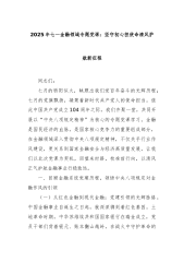 2025年七一金融领域专题党课讲稿:坚守初心担使命清风护航新征程同志们:七月的骄阳似火,映照出我们党百年奋斗的光辉历程;七月的党旗飘扬,凝聚着新时代共产党人的使命担当。值此中国共产党成立104周年之际,我们齐聚一堂,共同开展以“中央八项规定精神”为核心的专题党课学习。金融是国民经济的血脉,是国家核心竞争力的重要组成部分,在金融领域深入贯彻中央八项规定精神,不仅关乎行业作风建设,更关系到国家金融安全与经济高质量发展。让我们以此次党课为契机,回望来时路,校准前行向,以清风正气护航金融事业行稳致远。一、回顾金融系统党建历程,领悟中央八项规定对金融作风的引领(一)从红色金融到现代金融:党建引领的光辉脉络。中国金融事业自诞生之日起,就深深镌刻着红色基因。土地革命时期,中华苏维埃共和国国家银行在瑞金成立...
