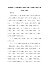 2025年七一金融领域专题党课讲稿:坚守初心担使命清风护航新征程