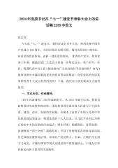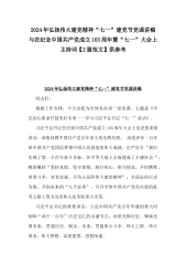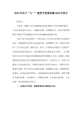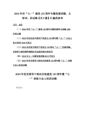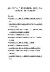 2024年庆“七一”建党节党课讲稿、主持词、大会上的讲话稿【多篇】汇编供参考