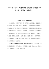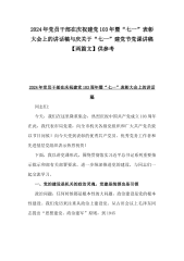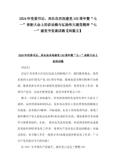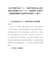 2024年党委书记在“七一”建党节表彰大会上的讲话稿与庆祝建党103年“七一”党课讲稿:弘扬伟大建党精神凄续红色血脉争做合格党员(2篇文)