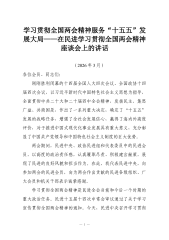 学习贯彻全国两会精神服务“十五五”发展大局——在民进学习贯彻全国两会精神座谈会上的讲话(2026年3月)各位会员、同志们:刚刚胜利闭幕的十四届全国人大四次会议、全国政协十四届四次会议,以习近平新时代中国特色社会主义思想为指导,全面贯彻中共二十大和二十届四中全会精神,发扬民主、集思广益、共商国是,作出了一系列重大决定,确定了“十五五”发展的战略任务,增强了全社会发展信心,赢得了海内外高度评价,对于推进中国式现代化事业发展具有重大意义,充分彰显了中国共产党领导和中国特色社会主义制度的巨大优势。两会期间,民进中央、政协民进组和代表委员中的民进会员,以高度的政治责任感,认真履职尽责、积极建言献策,展现了民进的良好风貌和担当作为。在此,我代表民进中央,向参加两会的民进会员,向为两会作出贡献的民进各级组...