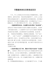 坚定信念,砥砺前行新任领导干部任职表态发言各位领导、同志们:大家好!在这个阳光灿烂的日子里,今天,市委、市政府经过慎重考虑,任命我为***街道办事处党工委书记,这是组织对我的信任和重托,也是党和人民对我工作的期望和鞭策。在此,我衷心感谢组织的培养,感谢领导的信任,感谢同志们的支持。面对新的岗位、新的职责,我深知责任重大、使命光荣。我将以今天的任命作为一个新的起点,以新的姿态、新的境界、新的作为,全力以赴的进入到新的岗位中,以实际行动回报组织的信任和人民的期望。为此,我在以下六个方面郑重表态:一、勤学不辍,锤炼党性在新的工作岗位上,我将始终保持学习的热情和求知的渴望,深入学习党的理论知识,增强党...
