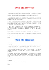 党员领导干部任职表态发言材料整合多篇纪委监委任职表态发言1各位领导、各位同志:大家好!刚才,会上宣布了关于我的任职决定,在此,感谢组织对我的信任和关心,感谢领导对我的支持与厚爱。这次任职,对我来说不仅是鼓励和认可,更是责任和鞭策,是考验和挑战。我将把今天作为一个新的起点,勤勉履职、踏实干事、务实工作。下面,我用四个关键词作一表态:一是服从。服从意味着要有正确的政治立场、要有较高的政治站位、要遵守严格的政治规矩。作为国家公职人员,要坚持以习近平新时代中国特色社会思想为指引,坚决服从党的领导,不断增强"四个意识",坚定“四个自信",做到“两个维护",捍卫“两个确立";作为**干部,要坚决服从市委主...