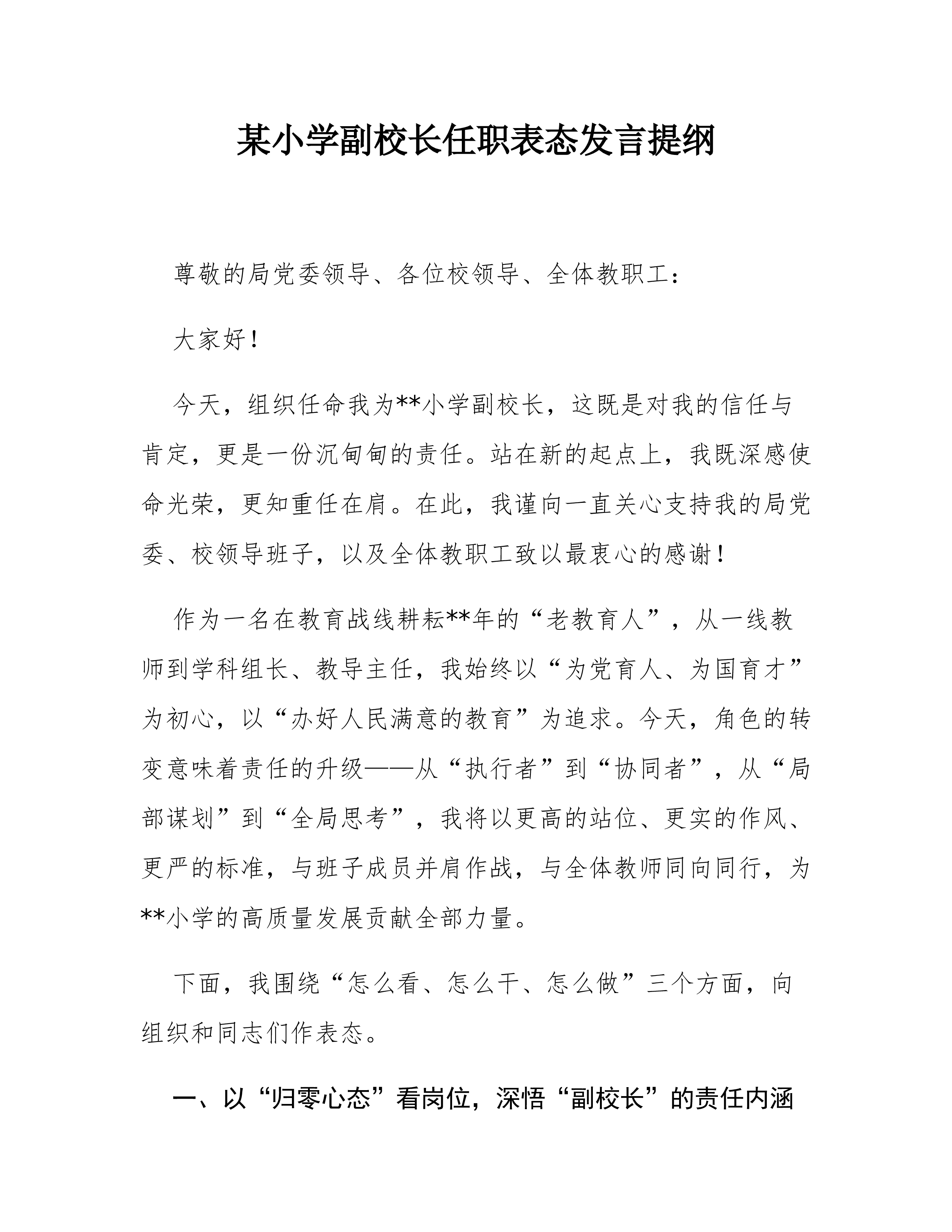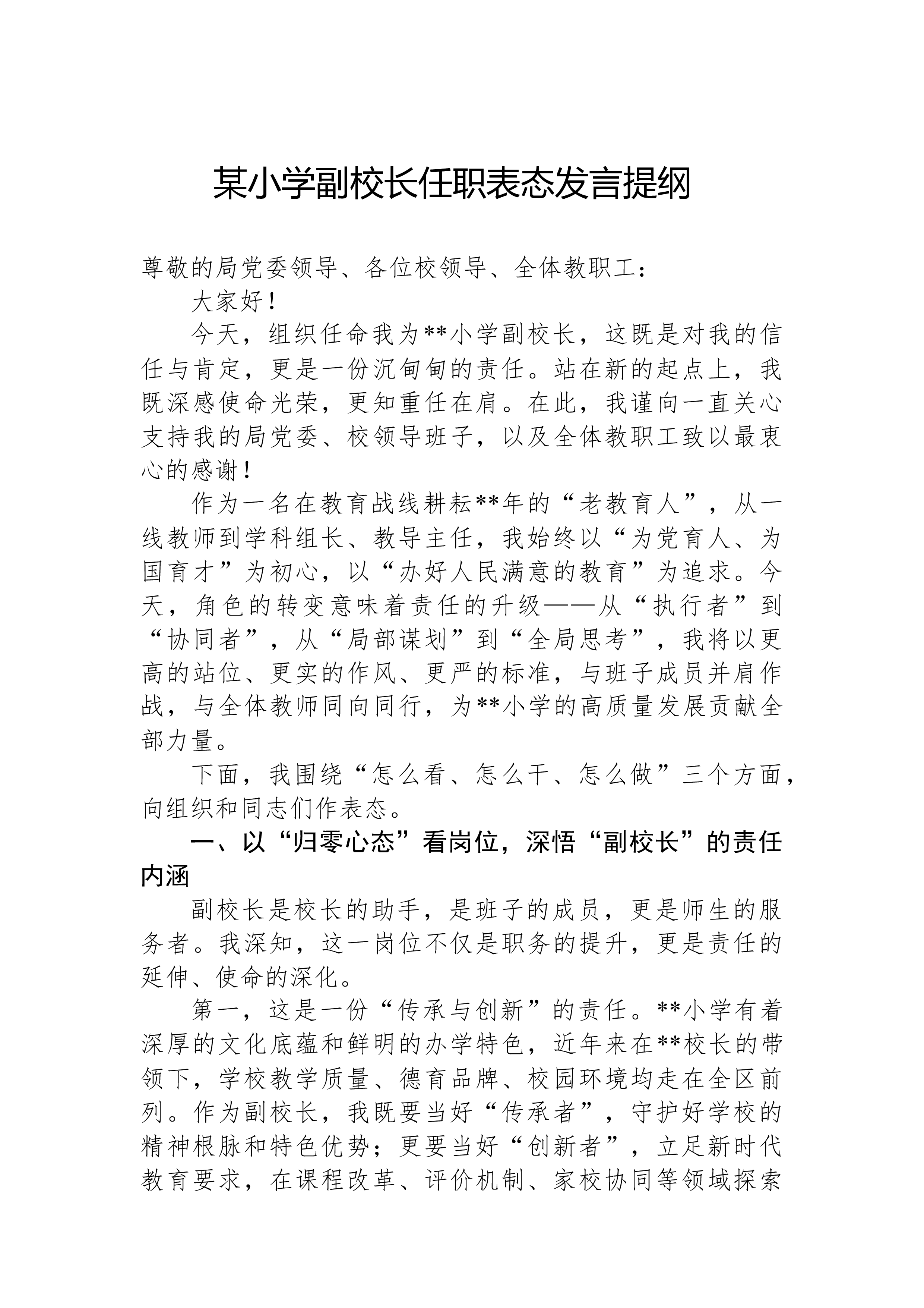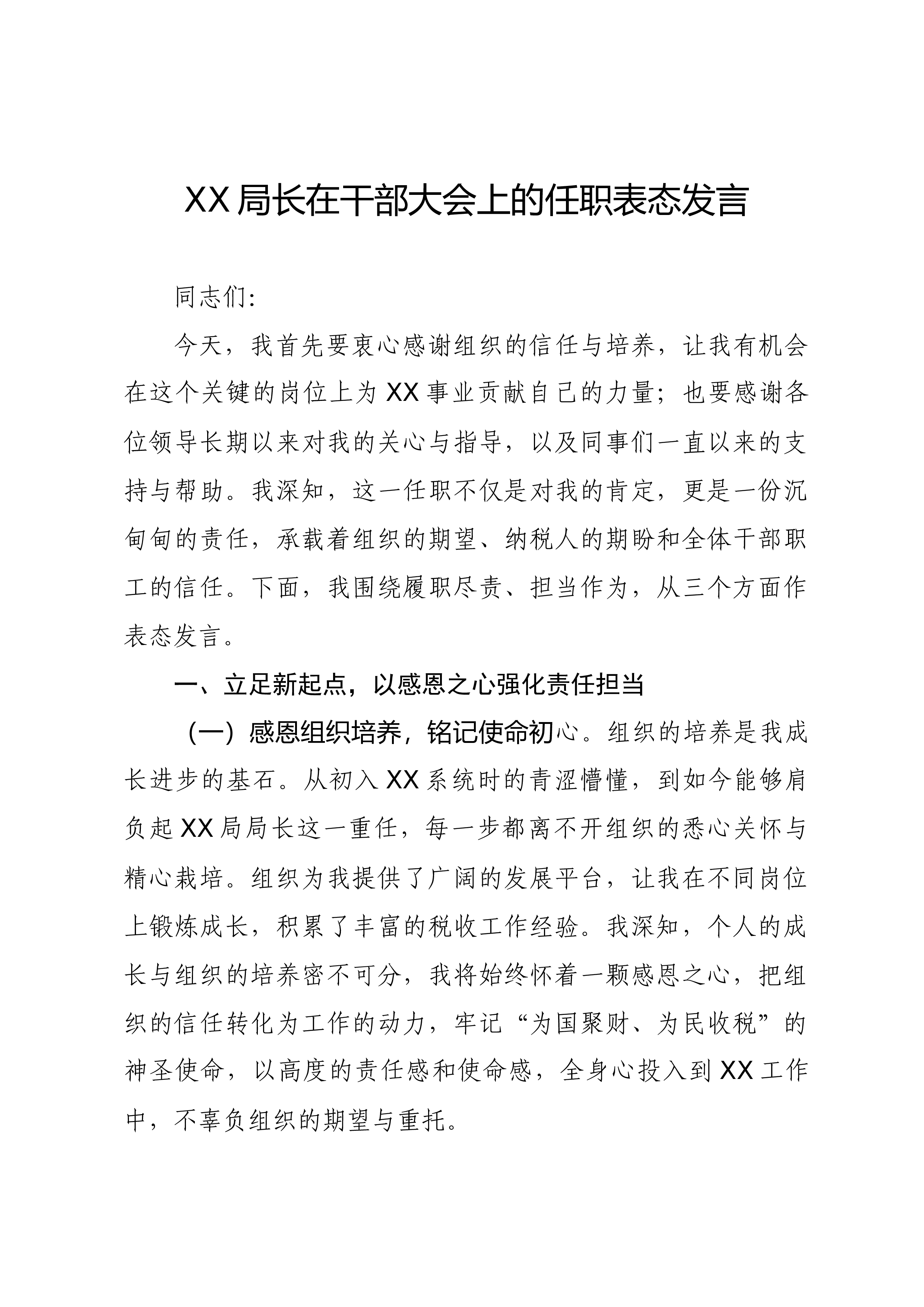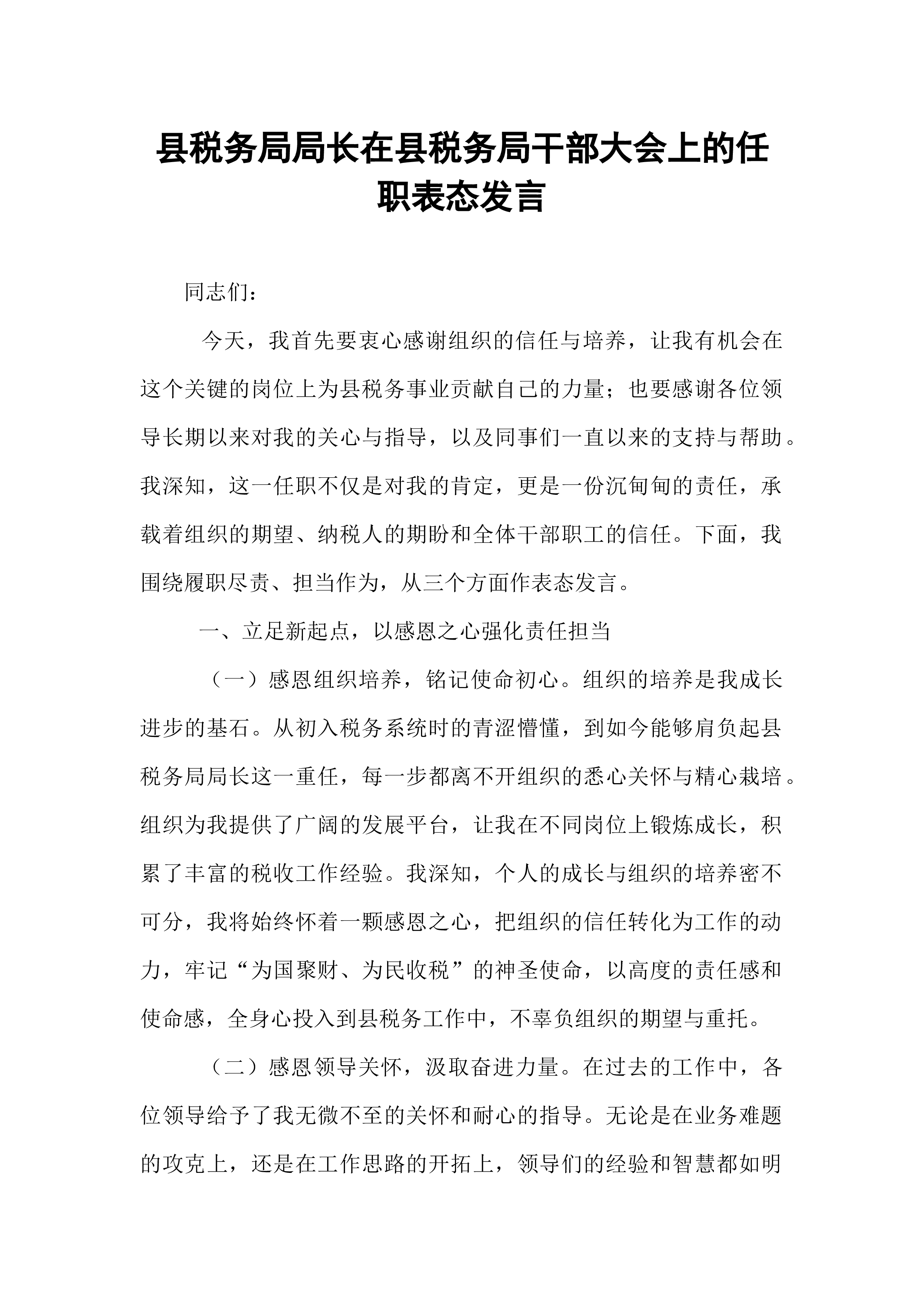 县委办主任在2025年县委办公室全办干部大会上的任职表态讲话同志们:大家好!今天,组织决定由我担任县委办公室主任,与同志们一道,共同为*县的发展事业服务。首先,我衷心感谢组织的信任与重托,也深知这份任命背后沉甸甸的责任与期望。能够来到县委办公室这个光荣的集体,与各位优秀的同志共事,我倍感荣幸。县委办公室是县委的“坚强前哨”和“巩固后院”,处在承上启下、协调左右的中枢位置,其地位特殊、责任重大。刚才,县委领导对办公室工作提出了明确要求和殷切希望,我们必须深刻领会、坚决贯彻。从今天起,我就是这个集体的一员。作为新任的“班长”,面对新岗位、新使命、新挑战,我将与大家一道,把忠诚举过头顶,把责任扛在肩上,把事业放在心间,把纪律挺在身前。在此,我向组织和同志们作四点表态:第一,坚守对党忠诚的政治本色,...