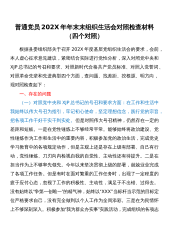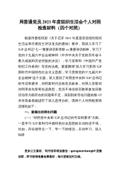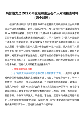 领导干部202X年度组织生活会“四个对照”个人对照检查材料(县级常务副部长)根据《中共××县委组织部关于召开202X年度基层党组织组织生活会和开展民主评议党员的通知》要求,本人结合一年来的学习、工作、生活等实际情况,对照“党中央和XJP总书记的号召和要求、新时代合格党员标准、入党誓词、革命先辈和先进典型”等4个方面,全面查找在政治、思想、学习、工作、能力、纪律、作风等方面的问题和不足,并进行了认真反思,提出了整改措施,明确了下一步努力方向。现将个人对照检查情况汇报如下。一、存在的问题(一)对照党中央和XJP总书记的号召和要求方面。虽然本人在平时工作和生活中,能够始终坚定正确的政治方向,积极响应...