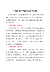 在“重温入党志愿书、喜迎建党100年”主题党日活动上的发言材料各位领导、同志们:根据机关党委的统一部署,今天我们利用一晌的时间,开展了“重温入党志愿书、喜迎建党100年”1月份主题党日活动。我相信,今天开展的这项活动,对我们参加的每个同志来说,都是一次深刻党性教育。在重温入党志愿书时,我不禁回忆起二十年前入党时的情景和激动的心情。我数了一下,自己的入党志愿书总共XXX个字,全文分3部分,第1部分谈对党的认识,第2部分谈为何要入党,第3部分谈入党后打算怎么做。其中,“全心全意为人民服务”出现2次,“铁的纪律”出现1次。重温这些“关键词” ,让我再一次检视入党的初心。我出生于军人家庭,从小受到红色...