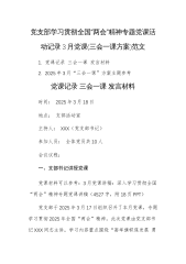 党支部学习贯彻全国“两会”精神专题党课活动记录3月党课(三会一课方案)范文