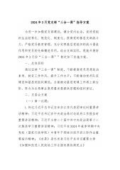 2024年2月党支部“三会一课”方案参考主题为进一步加强基层党组织建设,促进党组织生活经常化、规范化、制度化,充分发挥基层党组织的战斗堡垒作用和党员的先锋模范作用,结合支部实际,现开展好2024年2月份“三会一课”制定如下实施方案。一、支委会方案(一)第一议题:1.传达习近平在二十届中央政治局第九次集体学习上的重要要讲话精神;1月31日中共中央政治局会议精神;在中共中央政治局第十一次集体学习时重要讲话精神;《求是》杂志发表习近平总书记重要文章《铸牢中华民族共同体意识推进新时代党的民族工作高质量发展》;习近平总书记对江西新余市渝水区一临街店铺火灾事故作出重要指示精神(备注:习近平总书记对江西新余...