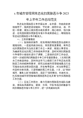 2023年上半年精神文明建设、常态化扫黑除恶斗争工作总结汇报报告(4篇)x市城市管理局常态化扫黑除恶斗争2023年上半年工作总结范文(1)常态化扫黑除恶斗争开展以来,在市委、市政府的坚强领导下,我局坚持讲规矩、守纪律,按照中央、省、市统一部署,紧扣上级扫黑办相关要求,精心组织、强力推进,在巩固前期扫黑除恶专项斗争成果基础上,继续推动常态化扫黑除恶斗争不断深入。一、工作开展情况(一)加强组织领导,切实增强扫黑除恶责任感和主观能动性。一是提高政治站位。局党委高度重视,将常态化扫黑除恶作为当前主要工作之一来抓,根据人事变动,为确保常态化扫黑工作持续有序开展,及时对局扫黑除恶斗争领导小组组长进行了调整...